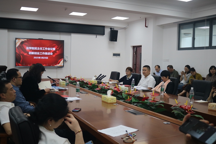 为全面部署新学期学生工作,推动学院育人工作高质量发展,3月26日下午,法学院2025学年春季学期班主任工作会议暨大学生创新创业工作推进会于博文楼南1109会议室召开。本次会议主题聚焦学生发展和创新创业工作推进,学院党委书记蔡洁、各年级班主任及辅导员参加会议,会议由学院党委副书记梁旭主持。