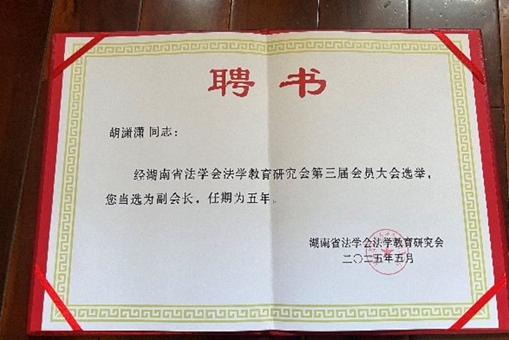 2025年5月10日,由湖南省法学会法学教育研究会主办,湖南文理学院文史与法学学院承办,常德市律师协会、常德市知识产权协会、《武陵学刊》、湖南省知识产权培训(湖南文理学院)基地协办的湖南省法学会法学教育研究会第三次会员代表大会暨2025年年会——“以实践为导向 推动法学教育高质量发展研讨会”在常德顺利召开,我院胡潇潇教授受邀参加了此次会议。