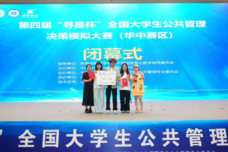2025年5月9日至11日,第四届“寻是杯”全国大学生公共管理决策模拟大赛(华中赛区)在中南大学顺利举行。我院派出由罗双老师、王梅老师指导,2022级行政管理孙天赐、刘若水和2023级法学唐俐颖三名同学参与的竞赛团队。最终获得大赛一等奖,罗双老师、王梅老师获得优秀指导老师奖。