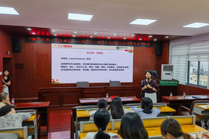 【法学院网讯】(文/谢理玥 贺思瑶)2025年6月24日,以“倾听心声,对话成长”为主题的班主任、研究生导师谈心谈话技能提升专题培训于博文楼南905顺利开展。培训由学校心理健康教育中心袁红梅教授主讲,法学院党委书记蔡洁、国家公园与旅游学院党委书记洪梅、法学院党委副书记梁旭,法学院和国家公园与旅游学院40余名研究生导师、班主任、辅导员等参加培训。