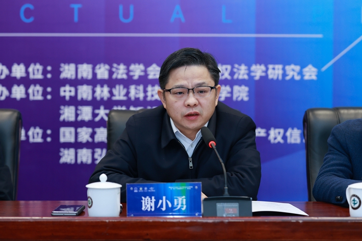开幕式由湖南省法学会知识产权法学研究会会长、湘潭大学知识产权学院院长肖冬梅主持,中南林业科技大学副校长尹健,湖南省高级人民法院副院长郭正怀,湖南省市场监督管理局副局长吴峰,湖南省法学会办公室副主任舒象宝,中国知识产权研究会副理事长、秘书长谢小勇先后致辞,湖南省法学会知识产权法学研究会副会长、秘书长刘友华主持学会工作总结、学会理事、常务理事增补等环节。