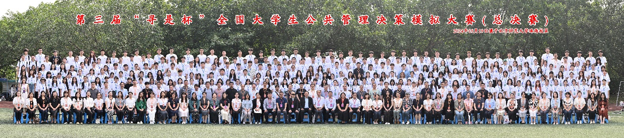 “寻是杯”全国大学生公共管理决策模拟大赛是目前国内公共管理学科领域最具影响力的本科生竞赛活动之一。大赛由教育部高等学校公共管理类专业教学指导委员会指导、中国科学学与科技政策研究会主办、中国科学学与科技政策研究会公共管理专业委员会协办、北京师范大学政府管理学院承办、上海哲寻信息科技有限公司提供技术指导,15位公共管理学科的知名专家学者(按姓氏排序)包国宪、陈振明、丁煌、高宇宁、姜晓萍、李俊清、谭安奎、徐晓林、杨宏山、郁建兴、张雷、章文光、周志忍、周忠良、竺乾威担任大赛评委。经过区域赛的晋级选拔赛制,来自北京大学、中国人民大学、北京师范大学、南京大学、西安交通大学、华中科技大学、四川大学、兰州大学、厦门大学等全国各地90支参赛队伍近500名师生同台竞技。