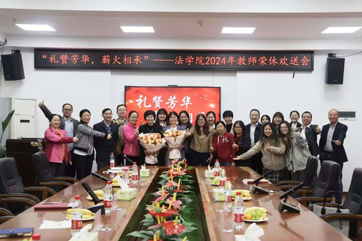 2024年10月28日下午4时30分,法学院2024年教师荣休欢送会于博文楼南1109顺利举行,欢送姜素红和湛念两位老师光荣退休。党委书记蔡洁、院长王飞跃、党委副书记梁旭、副院长曹芳、副院长张小罗、法学系主任黄娟、姜素红教授、湛念老师出席活动,学院教师及学生代表参加活动。本次欢送会由张小罗教授主持。