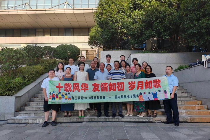 8月3日下午,在博文楼南1109,2010级行政管理一班部分校友重返母校召开“十载风华、友情如初、岁月如歌”主题班会,师生一起共叙情谊。一班班长徐文豹主持主题班会,分两个部分进行:1.返校校友追忆在中南林的四年时光和毕业十年的经历分享;2.未能返校的校友通过腾讯会议视频方式在线分享。校友们依次向学院报告了自己在校期间的趣事及毕业后的发展和经历,班会其乐融融,仿佛如初。