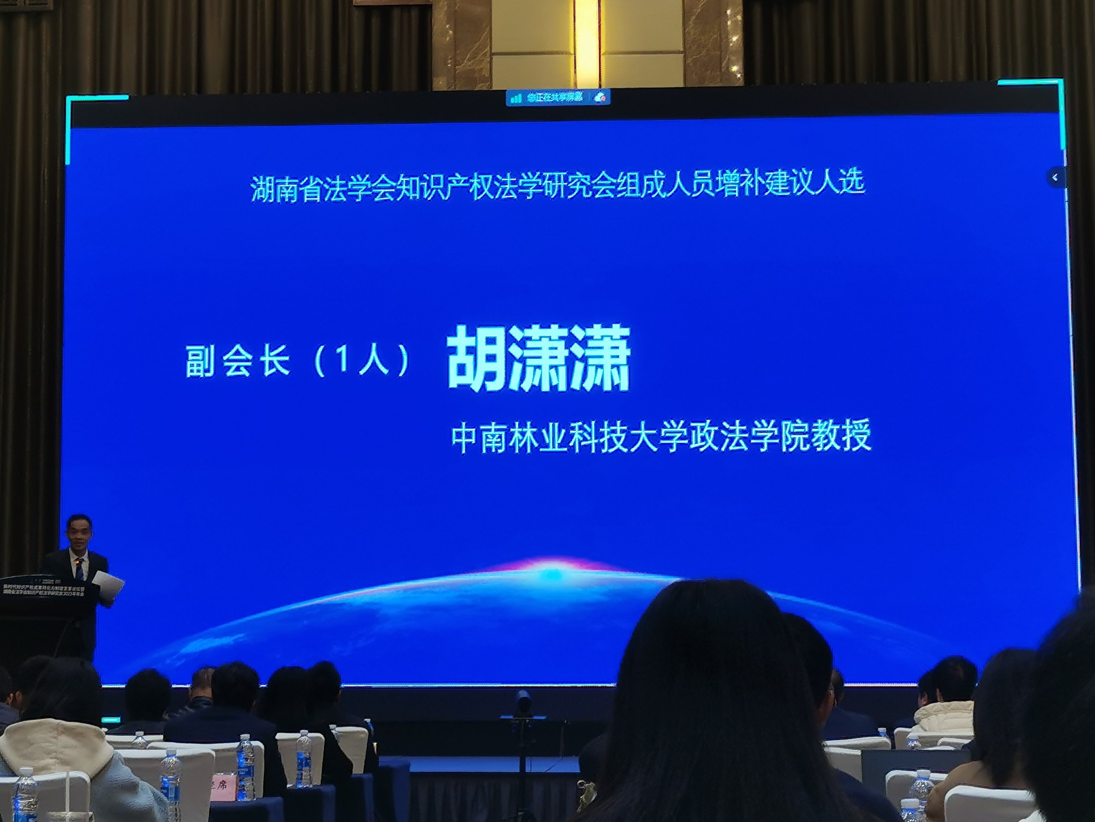 胡潇潇教授在本次年会上通过大会投票表决被增补为湖南省法学会知识产权法学研究会副会长,并受邀在年会主题论坛担任评议人,与业界同仁就支持全面创新的知识产权制度变革、推动高校科技成果转化以及高价值专利培育等问题进行了深入交流。