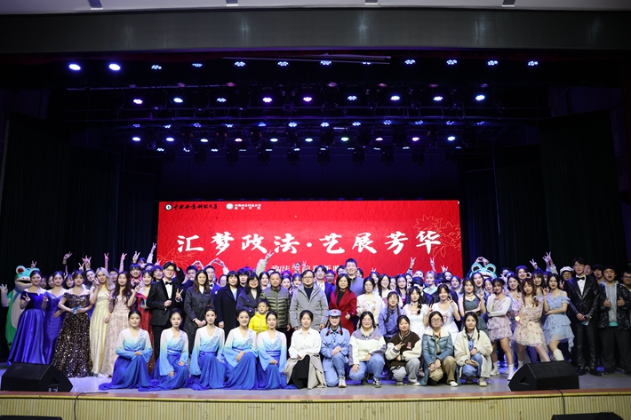 第三篇章“星辰大海 逐梦未来”,展现新时代政法青年自强不息的精神风貌,勉励新生努力拼搏,为国家发展作出贡献,肩负重任,怀揣远大志向不断前行,志在山海。古典舞《青山远黛》以翩翩舞步尽显中国古典文化的灿烂辉煌;研究生节目《歌舞青春》以歌曲串烧的形式重回那些青春飞扬的日子;创意走秀《show time 亮牌时刻》表达了对政法学子乘风破浪,扬帆远航的祝福。