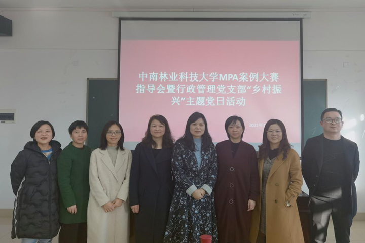 为贯彻落实习近平总书记关于乡村振兴战略的重要论述,行政管理教师党支部充分发挥基层党组织的专业优势,通过特色实践教学的形式引导学生关注“乡村振兴与乡村治理”的现实问题,营造“运治理之智 助力乡村振兴”的浓厚氛围。2021年11月24日,中南林业科技大学MPA案例大赛指导会暨行政管理党支部“乡村振兴”主题党日活动于博文楼南1105成功举行。政法学院副院长曹芳、行政管理党支部教师黎敏、王菁、王梅、匡娉婷、彭芬兰、邓艳林、杨建武出席本次活动,政法学院2019级、2020级行政管理专业学生参加本次活动。本次活动由曹芳副院长主持。