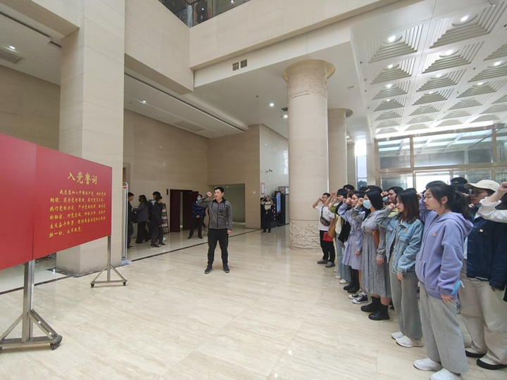 活动开始,全体学生党员在庄严的党旗前,重温入党誓词,明确入党初心,促使党员牢记誓言、恪守承诺,向党表达了学生党员承担的历史使命和时代责任,坚定了理想信念和为党的事业奋斗终身的决心。