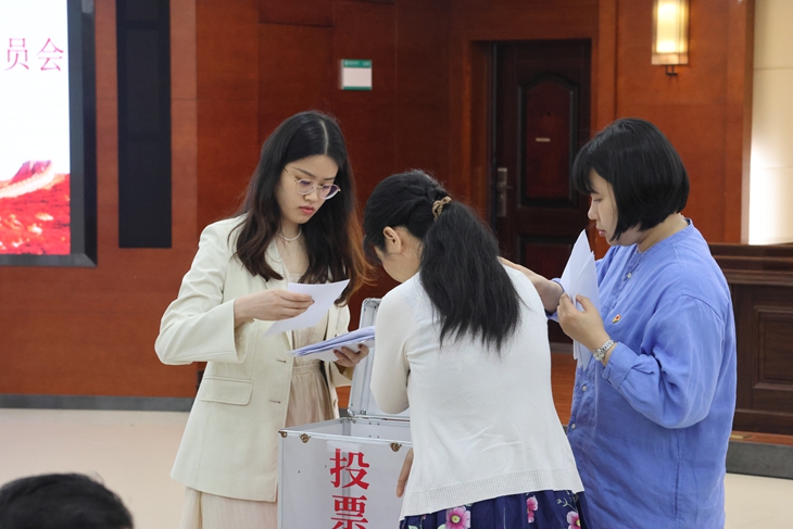 大会以无记名投票和差额选举的方式,选举产生了学院新一届党委委员,按姓氏笔画排序:王飞跃、张小罗、曹芳、梁旭、蔡洁。