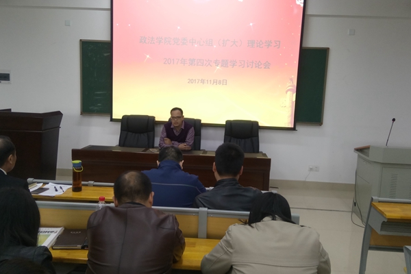 十九大,是我们党在全面建成小康社会决胜阶段召开的一次十分重要的大会,具有划时代的意义。118日下午,政法学院党委中心组在文科楼南1105举行学习(扩大)会议,深入学习贯彻党的十九大精神。学院党委成员、各党支部书记、教研室主任及部分党员代表参加学习。会议由学院党委副书记曾晓峰主持。