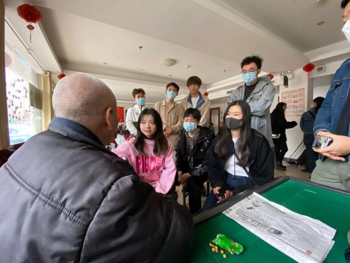 早上八点,志愿者们带着自己准备的水果和蛋糕等礼品到达了公寓活动中心,在干净整洁的公寓中,志愿者们亲切地和老人们闲聊话家常、进行娱乐身心的活动、讲解养生小常识,向老人普及权益保护小知识等等。期间,一位从1956年毕业后就响应国家号召支援边疆,在新疆待了34年,退休后才和老伴回到了湖南的老爷爷对在场的志愿者们上了一堂深情的实践课程。虽然不是党员,但是他讲只要思想上入党,严格要求自己,发挥个人的才能为社会做出应有的贡献,积极向党组织靠拢,始终热爱党、追随党。他对志愿者们说“你们大学生要心系家国未来,要严于律己,要对自己严格、对别人宽容,你们正值青春,这么好的时代,有很多机会和时间去建功立业。”