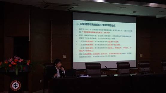 陈晓春教授首先对在华的境外NGO组织的分类管理情况进行了介绍,阐述了经济全球化时代政府对于在华的境外NGO组织进行分类管理的必要性和重要性。他指出,NGO是文化软实力的体现,但既有“正能量”,也有“负能量”,因此,应当结合在我国活动的在华境外NGO组织的性质、组织愿景、组织形式和活动领域,进行分类管理。他提出,我国应当建立分类注册与归口管理相结合的注册管理制度,加强在华境外NGO外籍员工的出入境管理,合理引导在华境外NGO的活动项目,提高管理部门依法分类监管能力,引导其健康、有序、稳步发展。陈晓春教授还以“颜色革命”为例,倡导青年学生保持清醒头脑,坚决抵制任何企图分裂中国的不良文化,维护国家的安全和利益,肩负起建设祖国的时代重任。