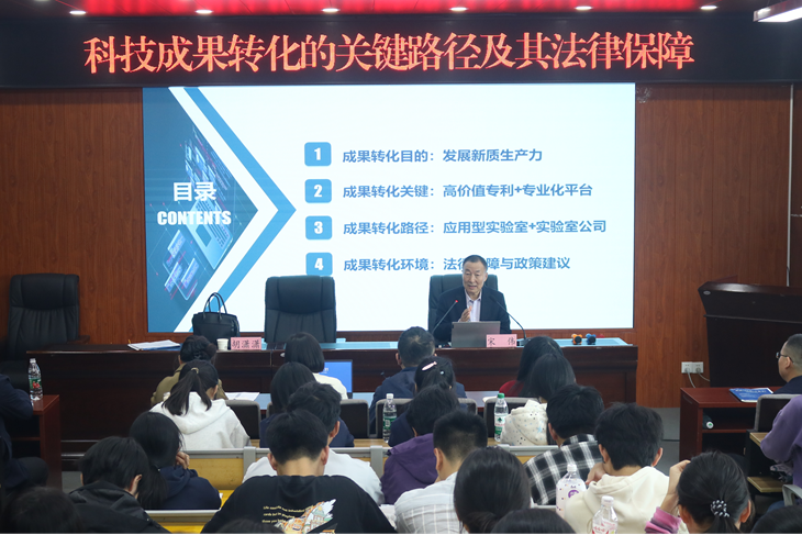 2025320日下午,中国科学技术大学知识产权研究院执行院长宋伟教授做客法学院,于博文楼南1205“科技成果转化的关键路径及其法律保障”主题讲座。本次讲座由胡潇潇教授主持,法学院师生百余人参加。