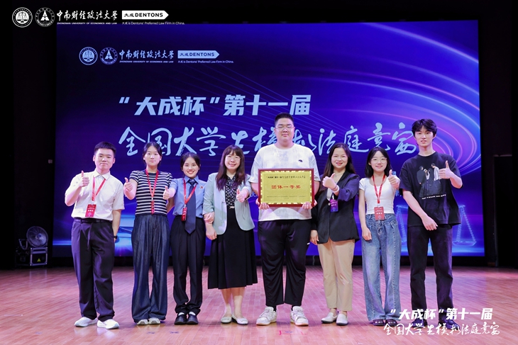 本届大成杯 第十一届全国大学生模拟法庭竞赛由中南财经政法大学承办、大成律师事务所协办,于 2025  3 月启动,共有中国政法大学、西南政法大学、西北政法大学、华东政法大学等155所院校赛队报名参赛,千余名师生同台竞技。我院师生高度重视,在黄娟老师的带领下组建了由方臻老师、刘雪梅老师担任指导老师,赵天成同学任队长,王娅妮、高海璇、刘树杰、伍伊玲、刘思琦、侯佳欣、梁正阳等七位同学为队员的强悍队伍。