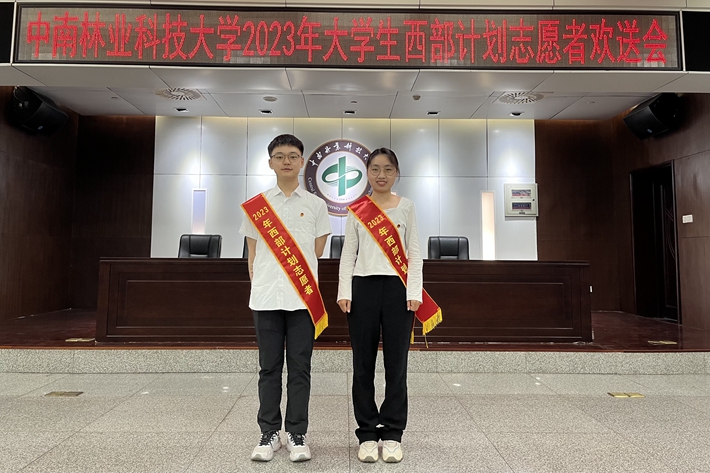 6月20日,在西部计划服务项目实施20周年之际,“中南林业科技大学2023年大学生西部计划志愿者欢送会”在我校崇德楼4会议室顺利举办。学校学校党委委员、副校长尹健,校团委书记李凯,副书记殷丹,校友办主任张仕吉出席会洗,包括我院王子恒和包霞霞在内的全校共计29名优秀志愿者参加会议。