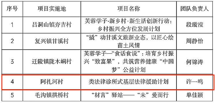 为深入贯彻落实党的二十大精神、习近平总书记在考察湖南时的重要讲话和指示精神,锚定“三高四新”美好蓝图,深入实施湖南共青团“百万青年建功乡村振兴实践育人行动”,动员引领湖南广大青年学子到一线、到基层服务乡村振兴战略,共青团湖南省委员会、湖南省学生联合会、湖南省青少年发展基金会决定开展第三届“芙蓉学子·乡村振兴”公益计划,鼓励支持在校大学生赴乡村开展社会公益服务,通过团的组织、工作、队伍和公益项目的有机结合,为奋力谱写中国式现代化湖南篇章贡献青春力量。我院学子积极申报,其中,2023级宪法学与行政法学研究生许一鸣主持的“类法律诊所式基层法律援助计划”项目入选湖南省第三届“芙蓉学子·乡村振兴”公益计划。该项目的指导老师是我院副院长张小罗教授,团队成员包括七名研究生(周清玥、曾彦儒、刘誉临、王心平、刘志强、刘俊卿、徐轩昂)和十二名本科生(周紫涵、袁嘉怡、谢郑坤、尹璐、柳钰妍、陈雪琴、钟欣霖、李嘉萱、任建栋、曹广亮、刘康、李诗贤)。