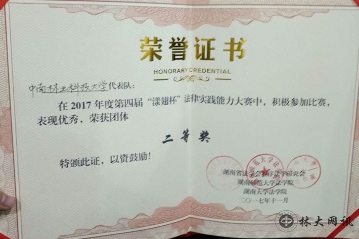 11月26日,由湖南省法学会程序法学研究会和湖南师范大学法学院、湖南大学法学院举办,长沙市冱涫程序法文化研究所承办,湖南师范大学漾翅法律实践团队协办的2017年第四届“漾翅杯”法律实践能力大赛在湖大和湖师大落幕。中南大学、湖南大学、湖南师范大学、江西财经大学等省内外众多高校参加竞赛,我校由政法学院2016级法学本科生组成代表队。经过激烈的赛场角逐,我校获得了团体二等奖的优异成绩,政法学院吴敏老师荣获杰出指导能力一等奖,2016级法学本科生刘杰、龚文捷同学分别荣获杰出诉讼能力二等奖及三等奖。