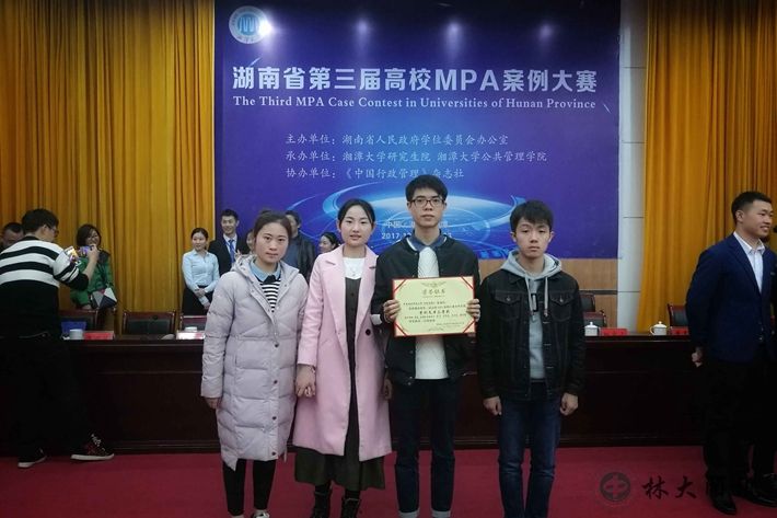 (文/政法学院 熊玲君 )12月3日,由湖南省人民政府学位委员会主办,湘潭大学承办,《中国行政管理》杂志社协办的湖南省第三届高校MPA案例大赛在湘潭大学落幕。全省共有13所高校的55支队伍参赛,分为本科生组和研究生组,设一等奖2项,二等奖4项,三等奖6项。我校政法学院2016级行政管理本科生李祎炅、童梦园、李泽龙、曹宇四位同学组队,在曹芳、匡娉婷老师的指导下撰写的《信用租房:无“信”不立时代租房模式的新变革》荣获本科生组三等奖。