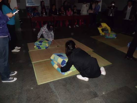 10月24日晚7点于经干图书馆大厅举行了政法学院叠军被大赛。出席此次活动并担任评委的有:权益安保部部长刘雅梅、副部长徐文豹,原权益安保部部长尹菊芳,副部长乔帅以及军事爱好者协会11级教官袁敏、熊唯、杨志。
